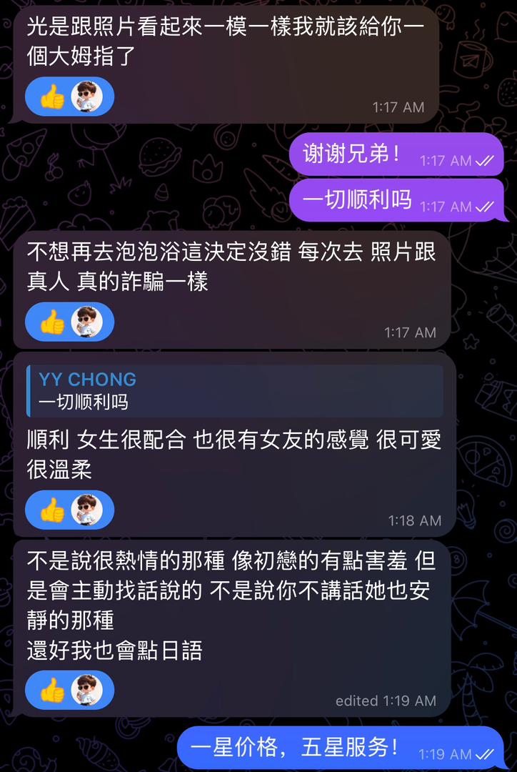 - *额外服务OP有什么要求亲自和女孩谈,她都会尽量满足您的要求,价格也是直接跟她接洽就好,她们开的价格都是合理的,由于这部分店家没有赚,所以细节请直接跟女孩确认就好了。*